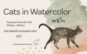 🐾 Cats in Watercolor Led by Oksana | $25 | Limited Seating – Register Early! Calling all cat lovers and creatives! 🐱 Join Oksana for a fun and relaxed watercolor class where we’ll sketch and paint charming cats. Learn simple techniques for capturing personality and texture through watercolor — whether it’s your own furry friend or a reference provided in class. You’re welcome to bring photos of your own cat to use as inspiration! This smaller, hands-on class ensures plenty of personal attention and…
