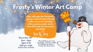 ⛄️❄️ Frosty the Snowman Winter Art Camp! ❄️⛄️ Join us on December 30th from 1:00–4:00 PM at the Long X Arts Foundation for a magical winter art adventure for kids ages 4–10! 🎨✨ This is a drop-off event, so parents can enjoy a little break while the kids enjoy the fun! ❄️🙌 Kids will enjoy a cheerful Frosty the Snowman storytime 📖⛄️, fun Christmas-y games 🎲❄️, warm hot chocolate with a yummy snack ☕️🍪, and festive winter crafts they’ll be excited to bring home! 🎨✨ All led by Oksana! Cost: $30 per child Scholarships…