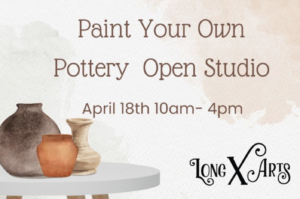 MAKE A RESERVATION ONLINE & GET $5 OFF YOUR POTTERY SELECTION! Come visit the Long X Art Gallery and enjoy a relaxing paint-your-own pottery experience! Your piece will be professionally glazed and kiln-fired for a beautiful, lasting finish. Drop in anytime from 10 AM – 4 PM Choose from a wide variety of pottery pieces including bowls, figurines, banks, boxes, and more — then bring them to life with color! Your finished piece will be ready for pickup in a…