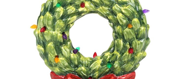Time to light up your Christmas with this gorgeous bisque Lighted Christmas Wreath! This piece comes with a light kit that includes base light bulb and colorful mini lights. This piece looks great just about anywhere! Paint to match your favorite holiday greenery! Better stock up on these cause they will be selling out fast!