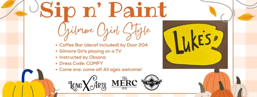 Join us for a cozy, Gilmore Girls–inspired Sip & Paint! Led by Oksana, we’ll be painting the iconic Luke’s Diner sign—a must for any Stars Hollow fan.