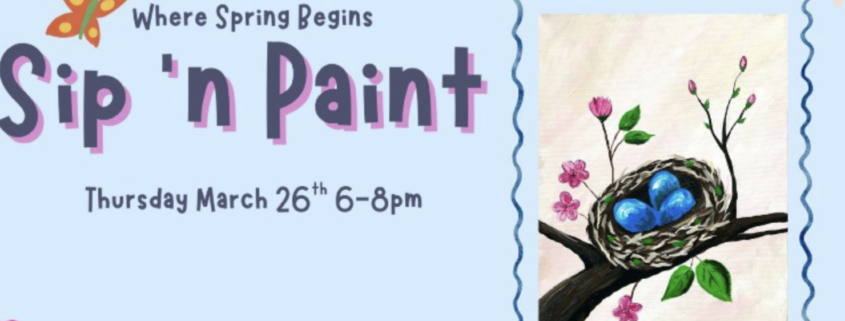 Believe it or not, spring is right around the corner! 🌷 Join us for a fun and relaxing Sip ’n Paint as we celebrate the season with a charming spring-inspired painting of a bird’s nest and blossoms.